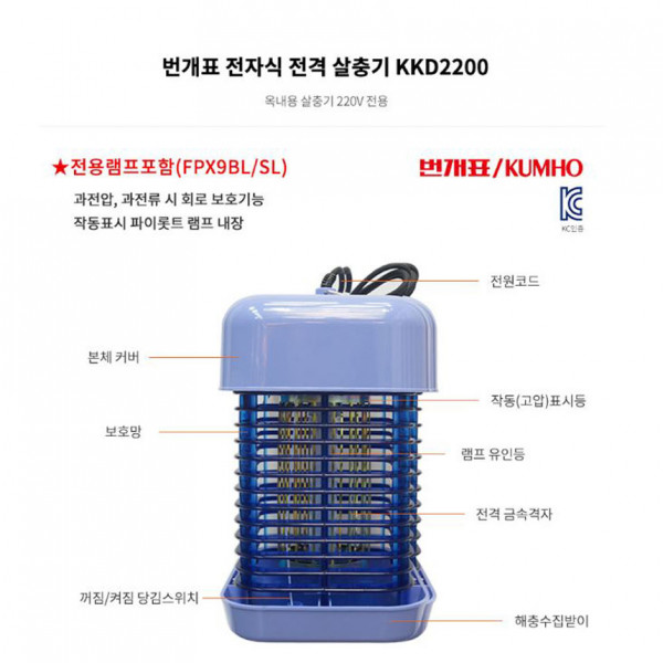 번개표 전기퇴치기 넉다운 교체용램프 (kkd-2200)전용램프